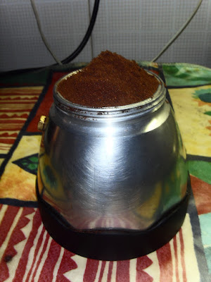 Poi dobbiamo riempire l'imbutino di polvere di caffè, bello colmo.